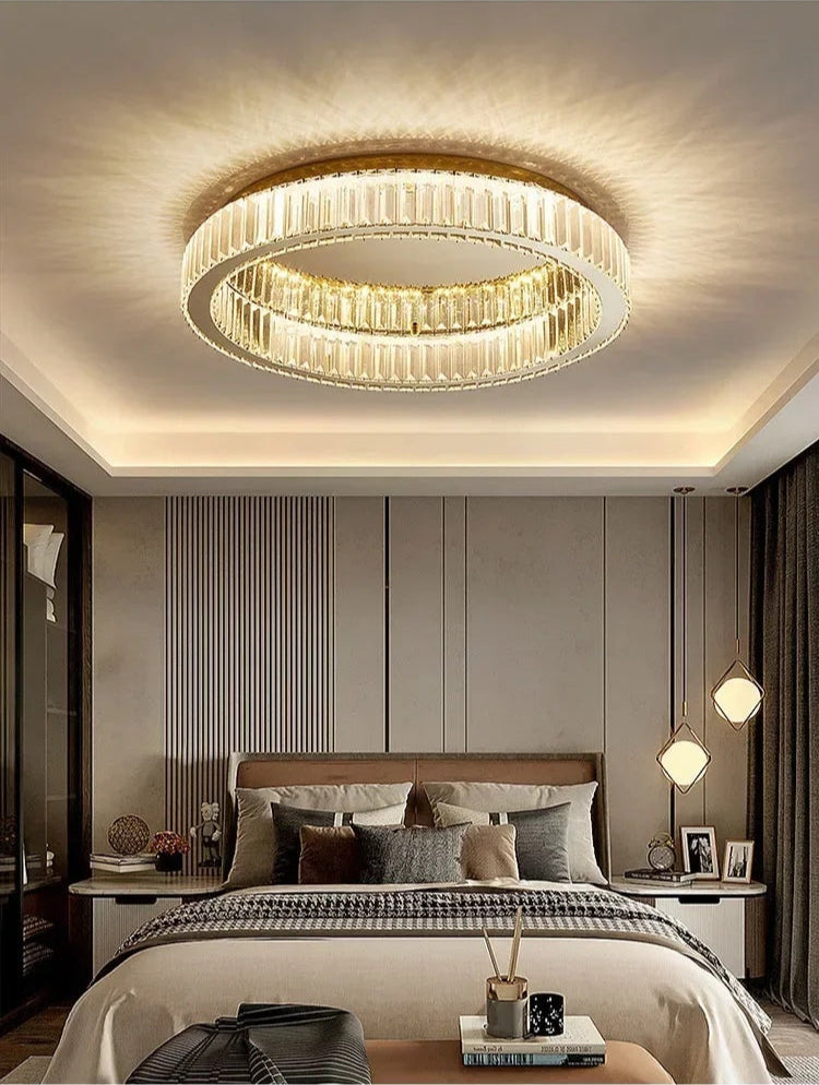 Ta lampa sufitowa ma okrągły kształt i jest montowana blisko sufitu. Zewnętrzny pierścień składa się z wielu prostokątnych kryształowych elementów ułożonych pionowo. Oprawa posiada trzy regulowane tryby oświetlenia.