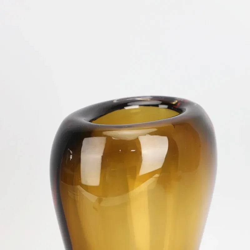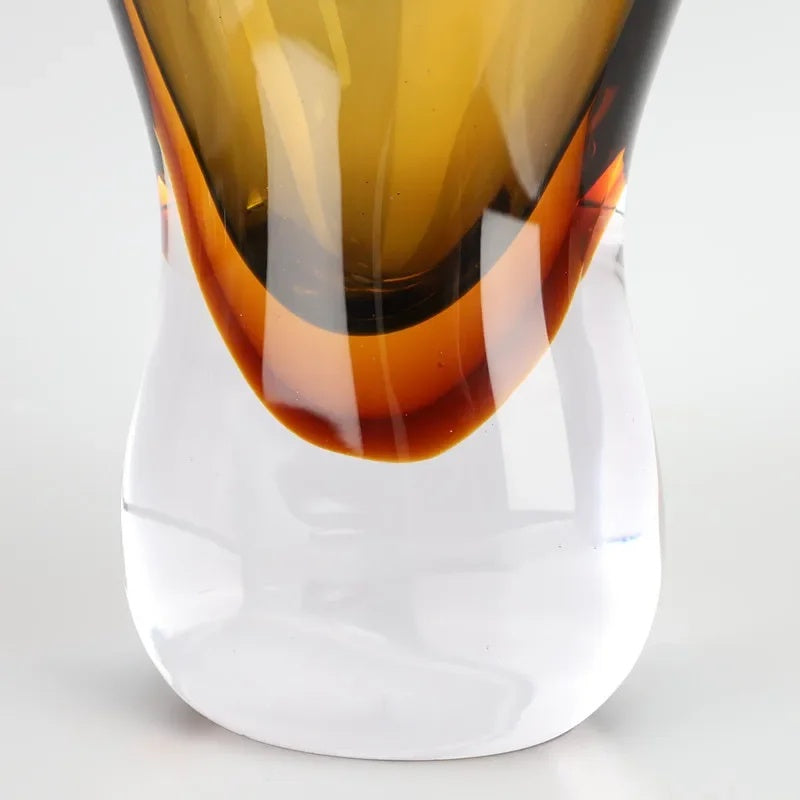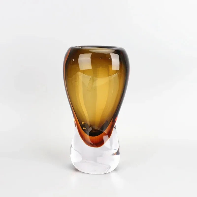 Ten szklany wazon składa się z dwóch różnych części. Dolna połowa wykonana jest z przezroczystego szkła, które tworzy podstawę. Górna część zaczyna się od ciemnego tonu przy krawędzi i stopniowo przechodzi w przezroczyste szkło, zanim połączy się z podstawą.